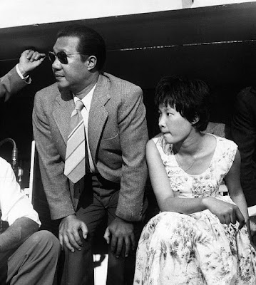 Emperor Bảo Đại of Vietnam and his eldest daughter Princess Phương Mai at the Italian Formula 1 Grand Prix at Monza, 1955.